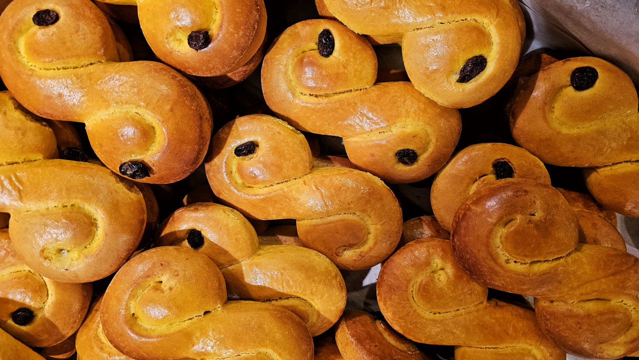 🐈⬛ Innymi tradycjami związanymi z obchodami Sankta Lucia są także lussekatter czyli.... łucjokotki. Kotki nie przypominają kotów, w dodatku są szafranowymi bułeczkami zwiniętymi w ósemeczkę i trwa na wieki bój o to, czy w oczkach powinny byc rodzynki, czy nie - jaki kraj, taki problem rodzynkowy, nie potrzeba do tego sernika.